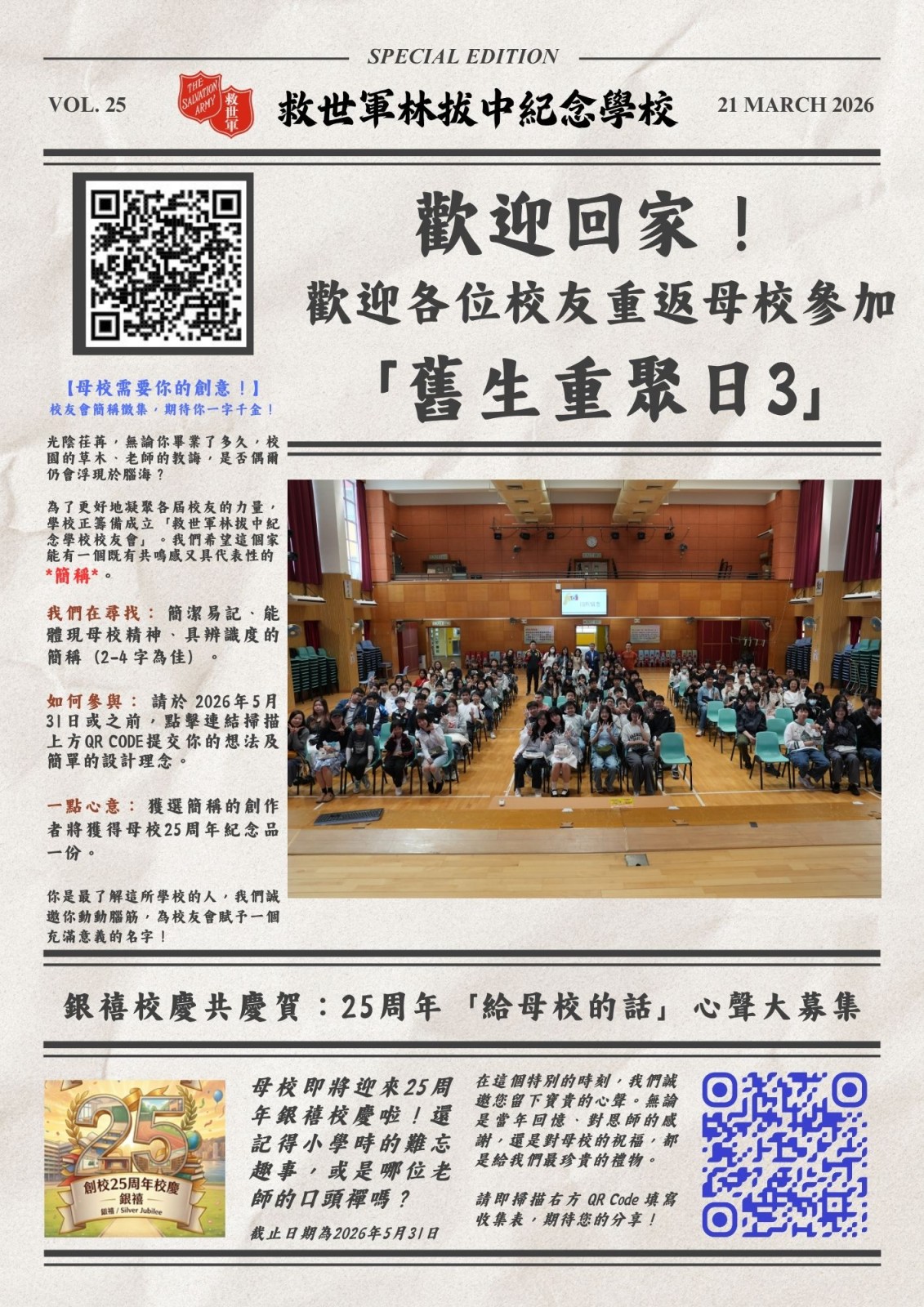 25周年校慶 — 「給母校的話」舊生心聲收集